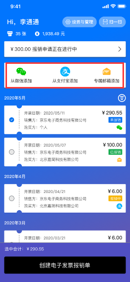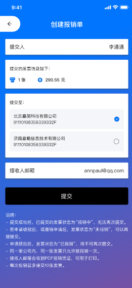 快速提交报销申请,支持一人多公司,电子邮件同步归档