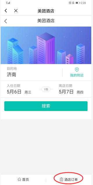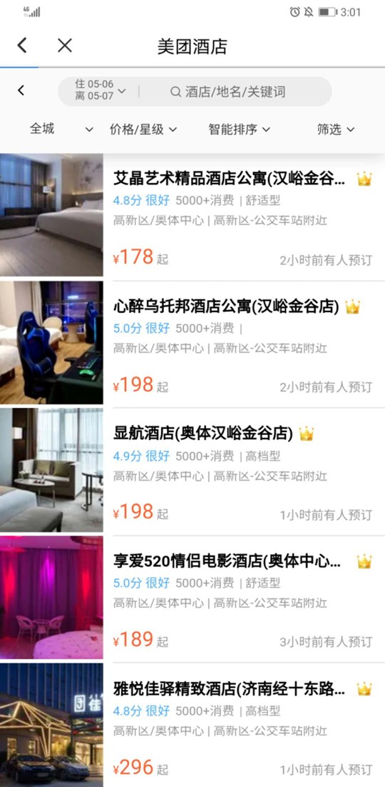输入目的地,设置入住的时间就是可以看到附近的酒店信息