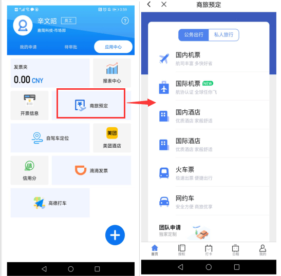 悦报销以差旅预定为核心功能之一,实现智能商旅,聚合优质企业消费服务商,一站式商旅消费,智能制定最优商旅计划及预订。对接途牛商旅、中兴商旅、企业管家、高铁管家、滴滴出行、美团酒店、高德打车等 平台,让用户订票、订房更方便,出行更快捷,提升用户差旅品质。