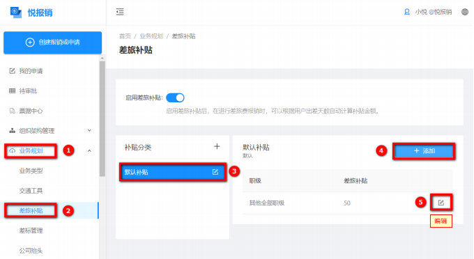 差旅补贴自动设置,补贴标准由职级、补贴项⽬定义,可根据公司自己需求设置差旅补贴。