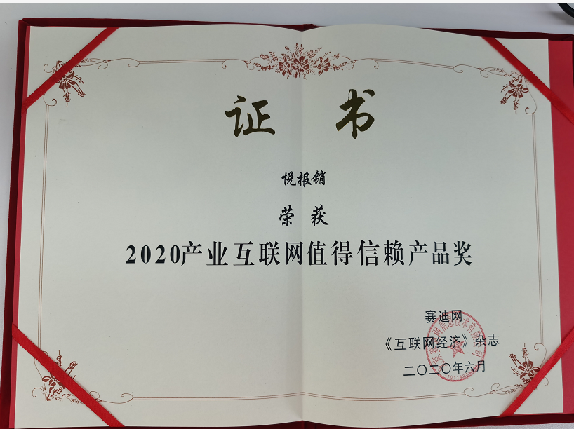 - 近日,由赛迪网联合《互联网经济》杂志发起的2019-2020年度互联网产业生态创新优秀成果正式揭晓。悦报销荣获2019-2020年度产业互联网值得信赖产品。通过赛迪网在线评选和评审委员会评选,悦报销颇受青睐,产品赢得了用户的信赖。
