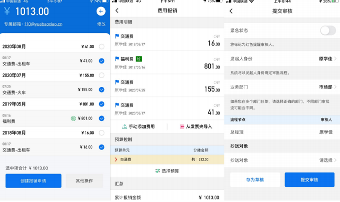 企业可以通过悦报销移动端应用实现员工报销的事项申请、发票采集、提单报销、业务审批等操作,优化报销流程,让报销更高效。