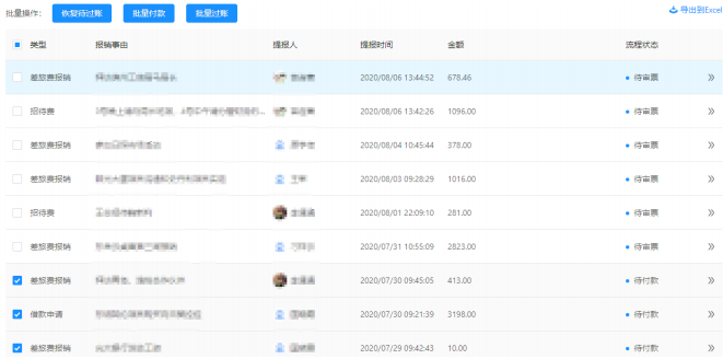 领导审批后,单据自动流转至财务人员进行审核。财务人员在 PC 端的系统内看到报销信息并确认正确后,审批通过。
