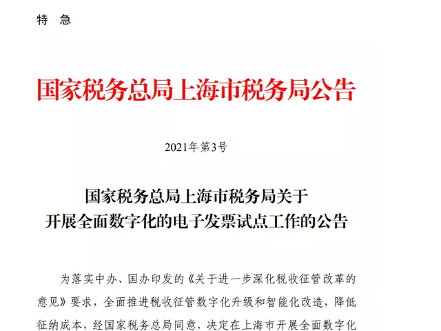 2021年11月30日、12月1日,上海市、广东省、内蒙古自治区税务局纷纷发出公告,公告表明,将从2021年12月起,正式开展全面数字化的电子发票试点工作。