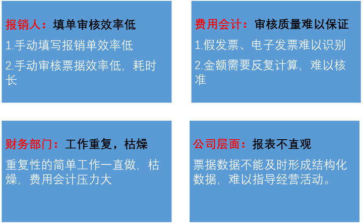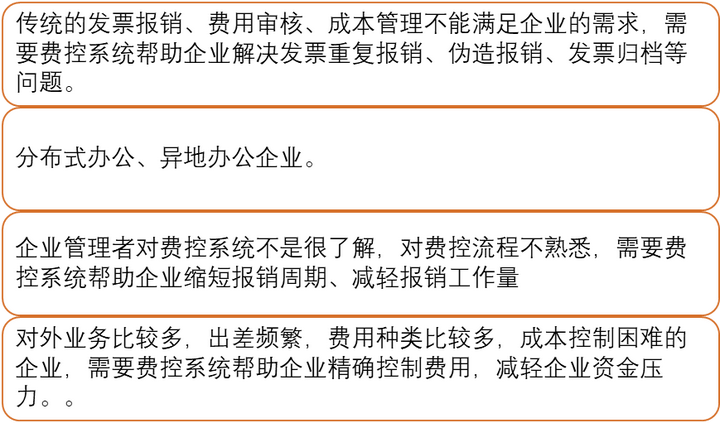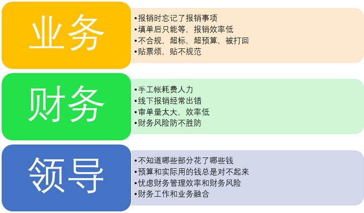 中国费控报销行业还处在发展起步阶段,并且费控报销是刚需,企业的费控管理一般是预算和报销两大环节,主要是为了降低企业成本,提升经济效益。实际过程中,经常会面临多种多样的痛点和难点,导致企业不能有效的掌控和管理费用,阻碍企业降本提效。